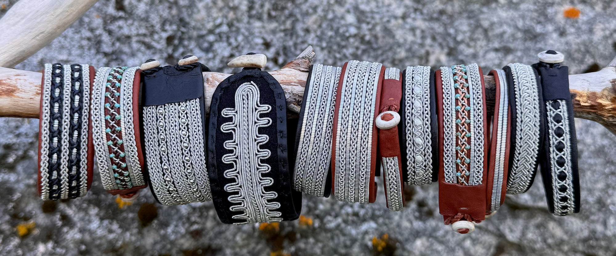 The art of pewter thread embroidery from the Saami culture and the beautiful nordic nature are true inspirations for my designs and creativity. Incorporating contemporary elegance and simplicity, I strive to honor and share my dedication to this traditional handcraft from my homeland. Each piece is uniquely handmade by me in California. Please allow up to two weeks for delivery.